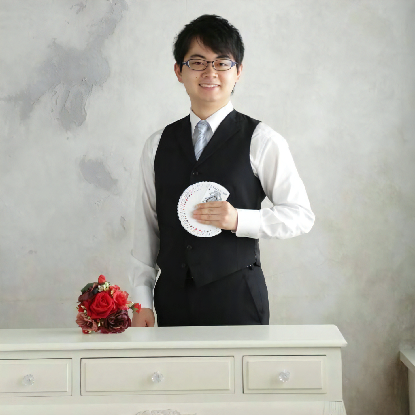 マジック歴が約10年で、そのほとんどをスリービングに魂を売ってきたマジシャン。コンテストで使用する技法はスリービングやパームが主流であり、シンプルかつビジュアルなマジックが大好き。