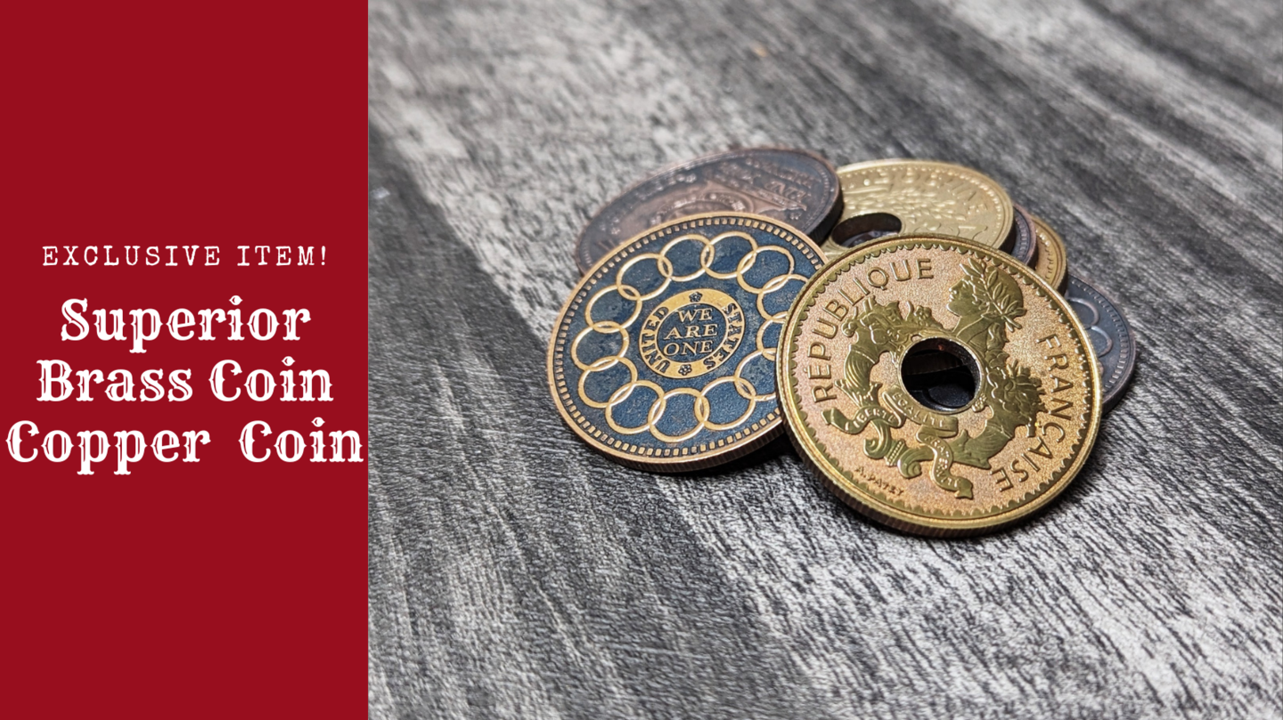 また、オリジナル版は金貨→赤いチャイニーズコイン→銅貨→黒いチャイニーズコインの変化に対して、本商品はイギリスの銀貨→黒いチャイニーズコイン→アメリカの銅貨→フランスの真鍮貨と、実際に著名な国で使用されていたデザインのコインをモチーフにしております。