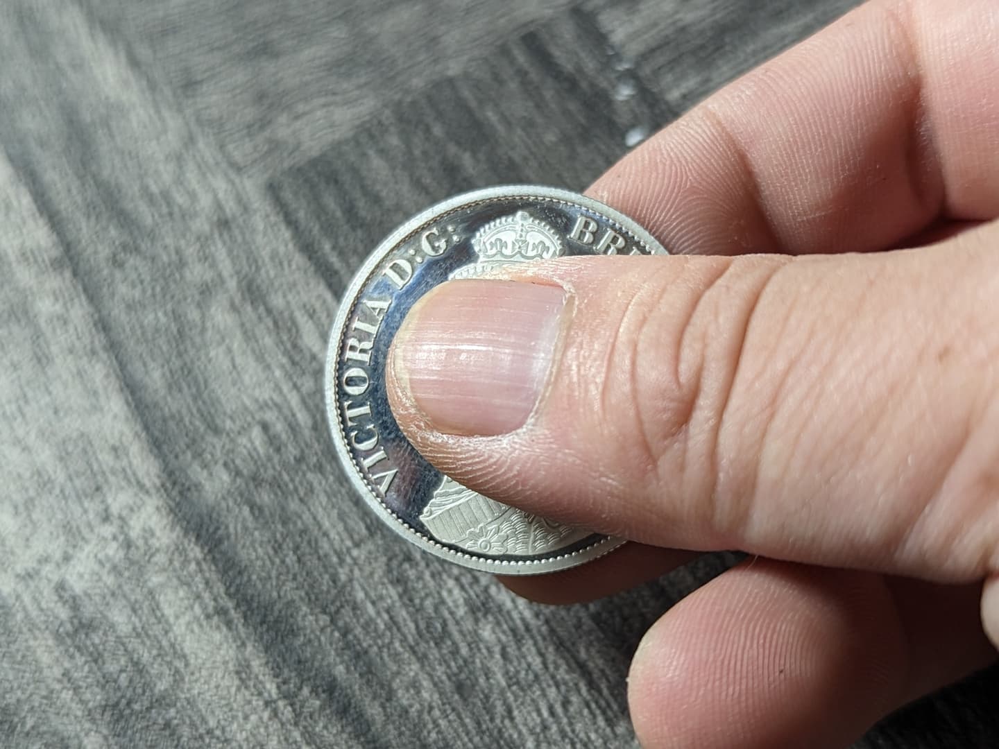 そこで、当店のレギュラーと同じ見た目のパーミングコインを切削し、両面改め可能なスプリットコインをリリースいたします。