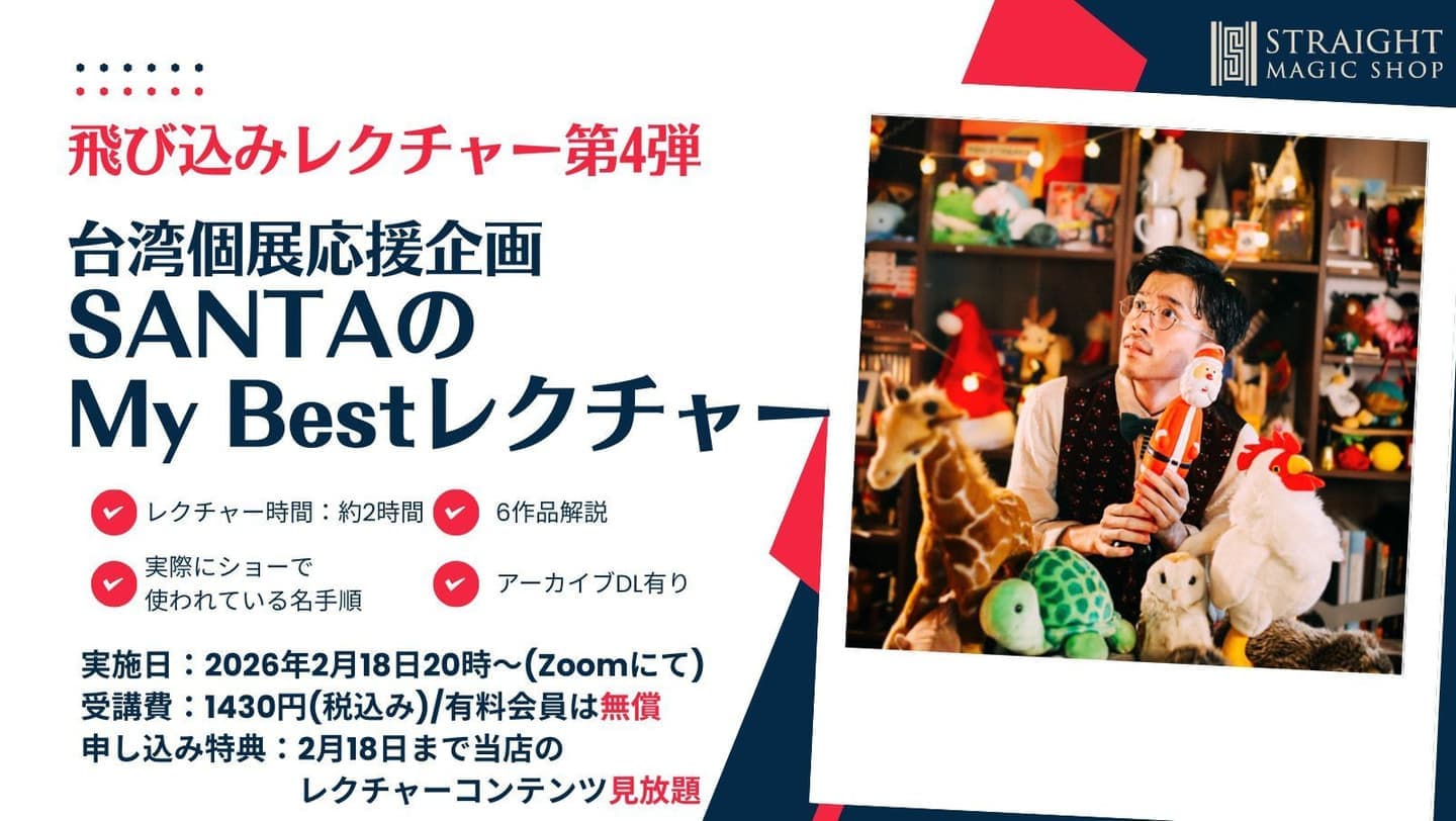 当店のレクチャーの特長は、「マジシャンの考え方」を重要視して、「アクセスしにくいニッチな情報」にこそ価値を置き、「マジック(トリック)以外の重要な情報」も積極的に導入していく点です。