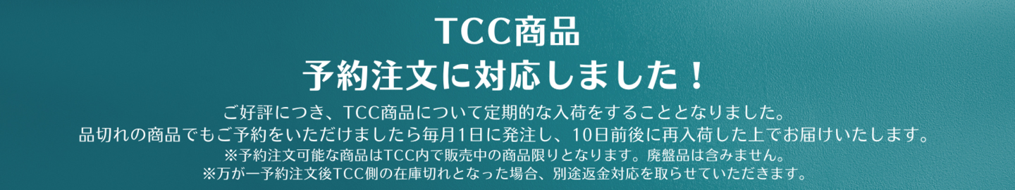 ※TCC商品は全て輸入品のため、外装にダメージがある場合がございます。予めご了承ください。