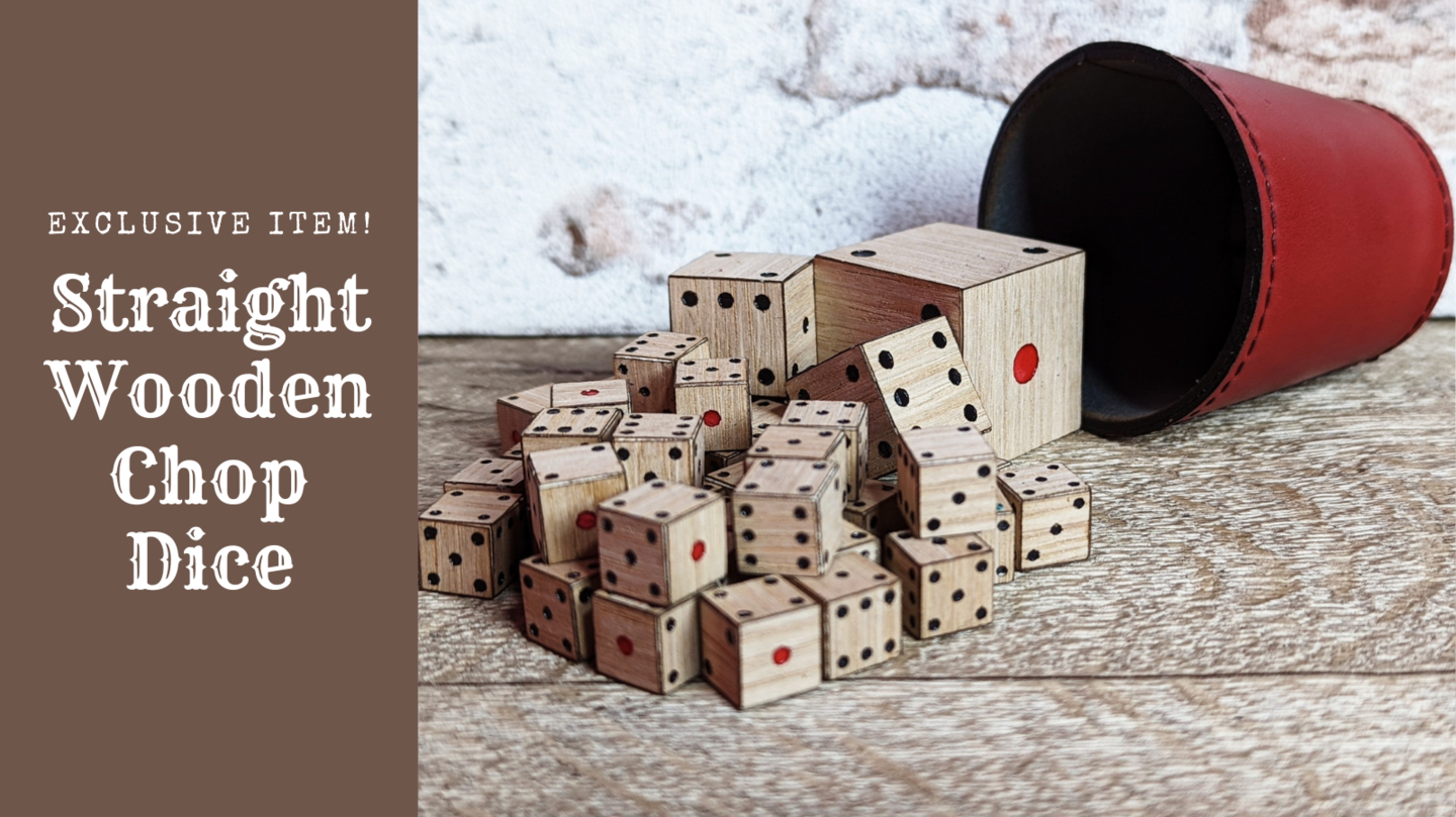 そのチョップカップをさらに不思議に、楽しく演出するための木製ダイスを作成いたしました。