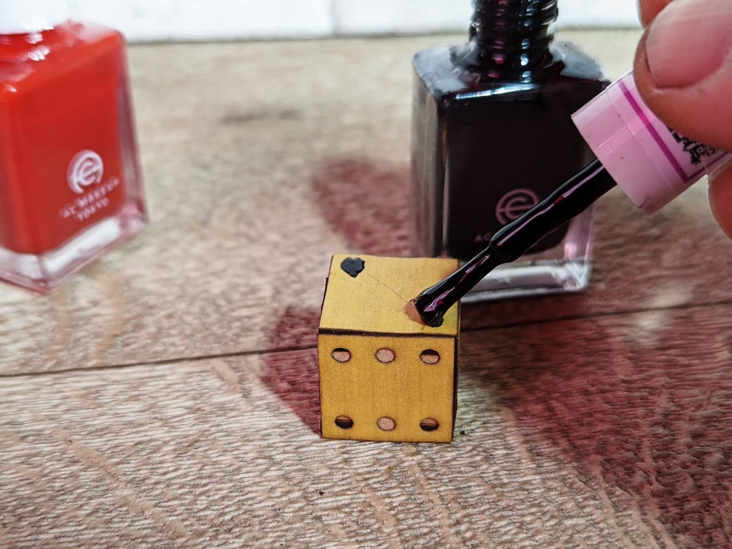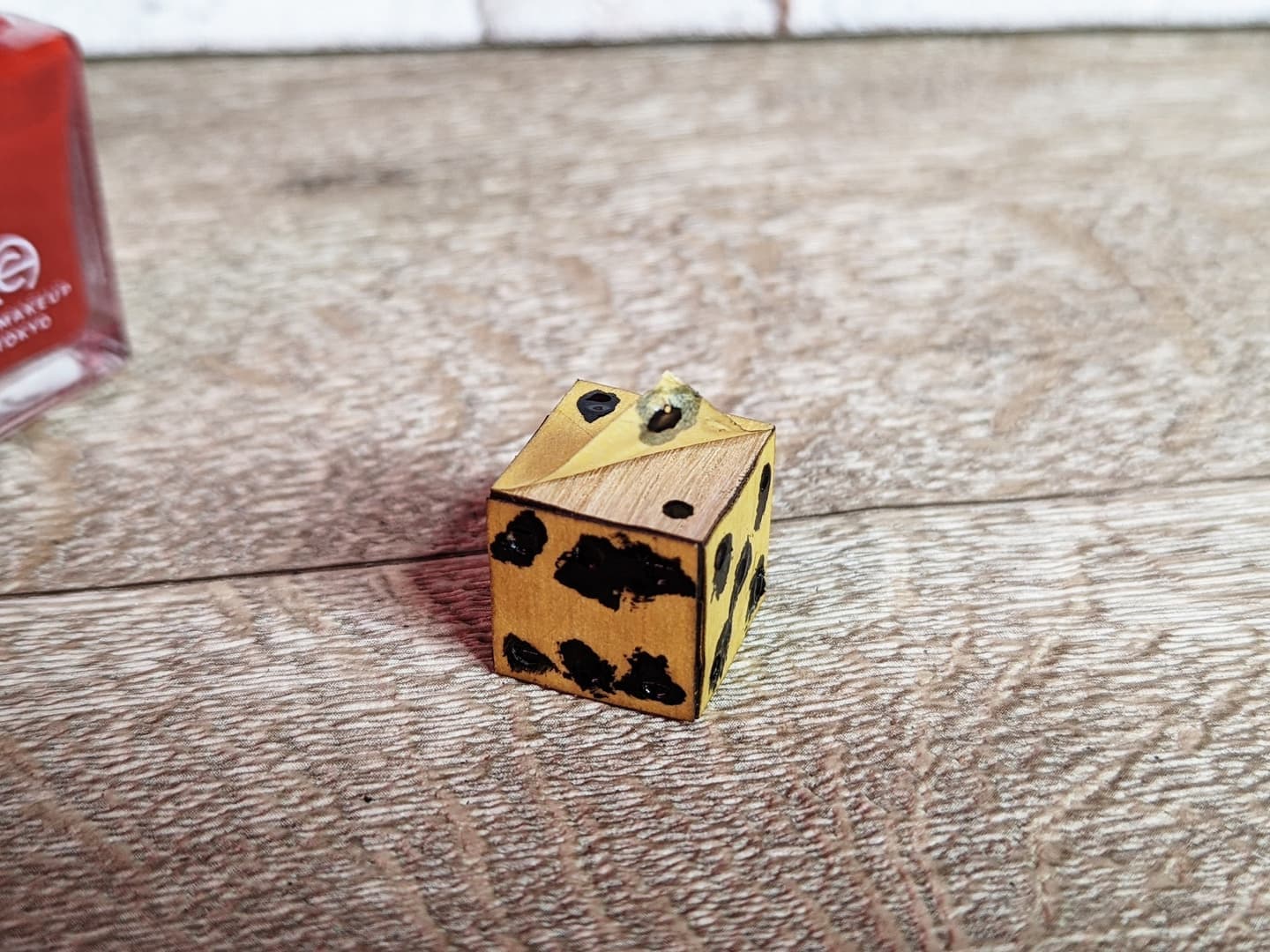 そこで、1㎝角のヒノキのキューブに、直接レーザーで目を刻印したエコノミーダイスを作成いたしました。