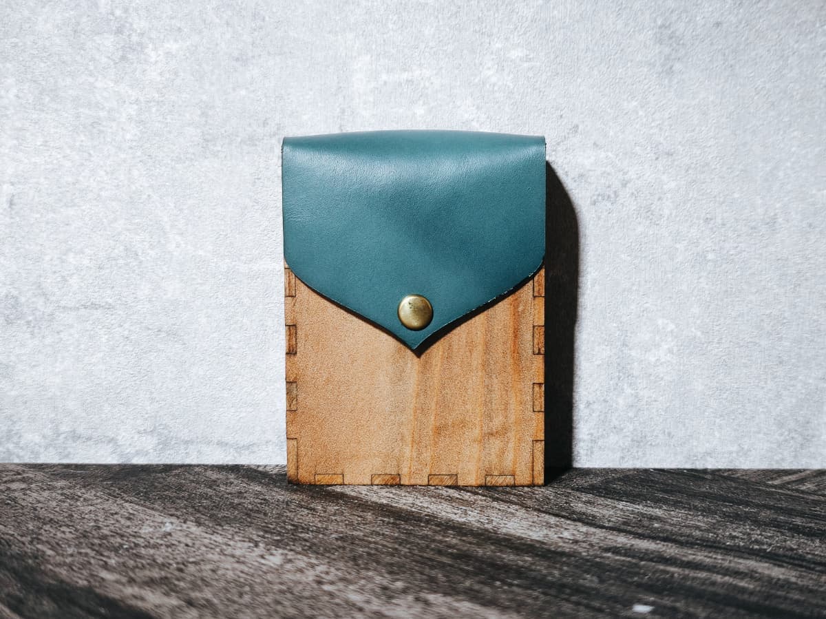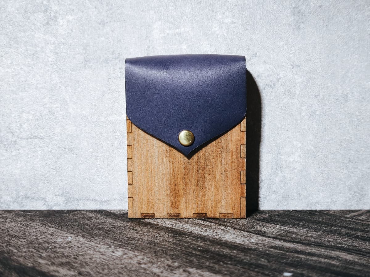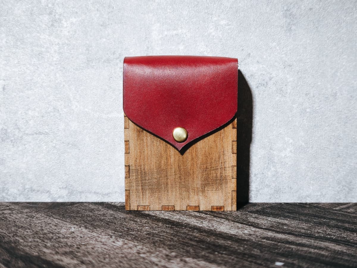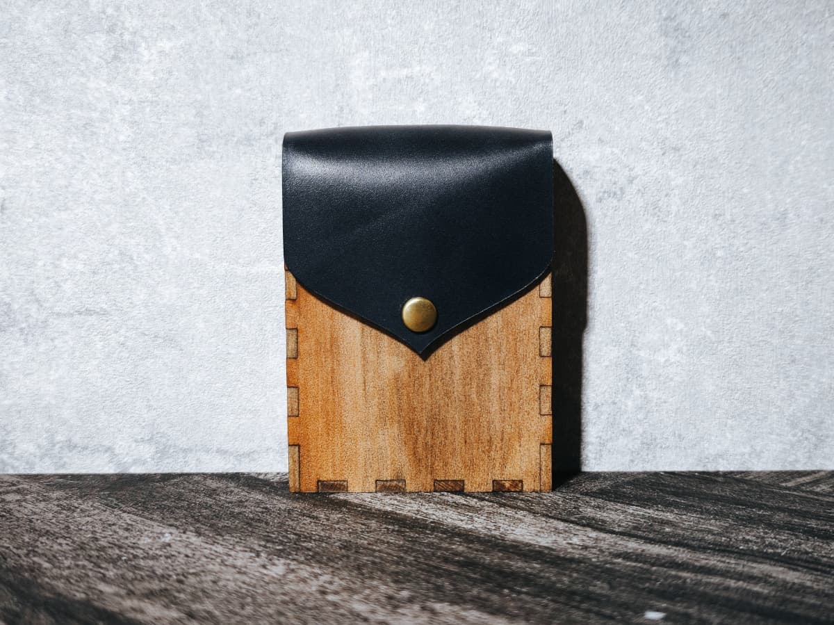 ボディーには天然木材、フラップには姫路産の本革を用いました。
