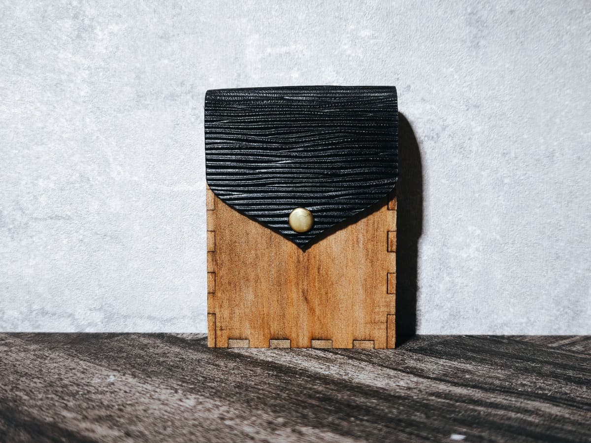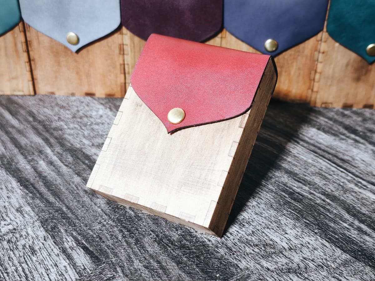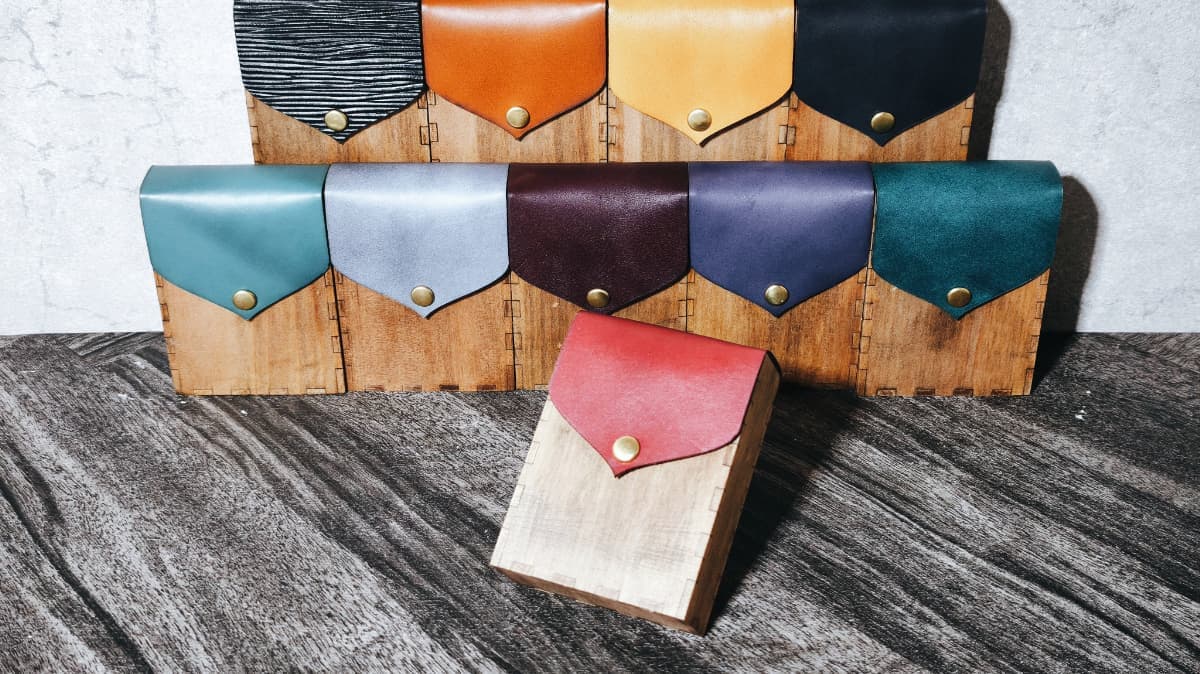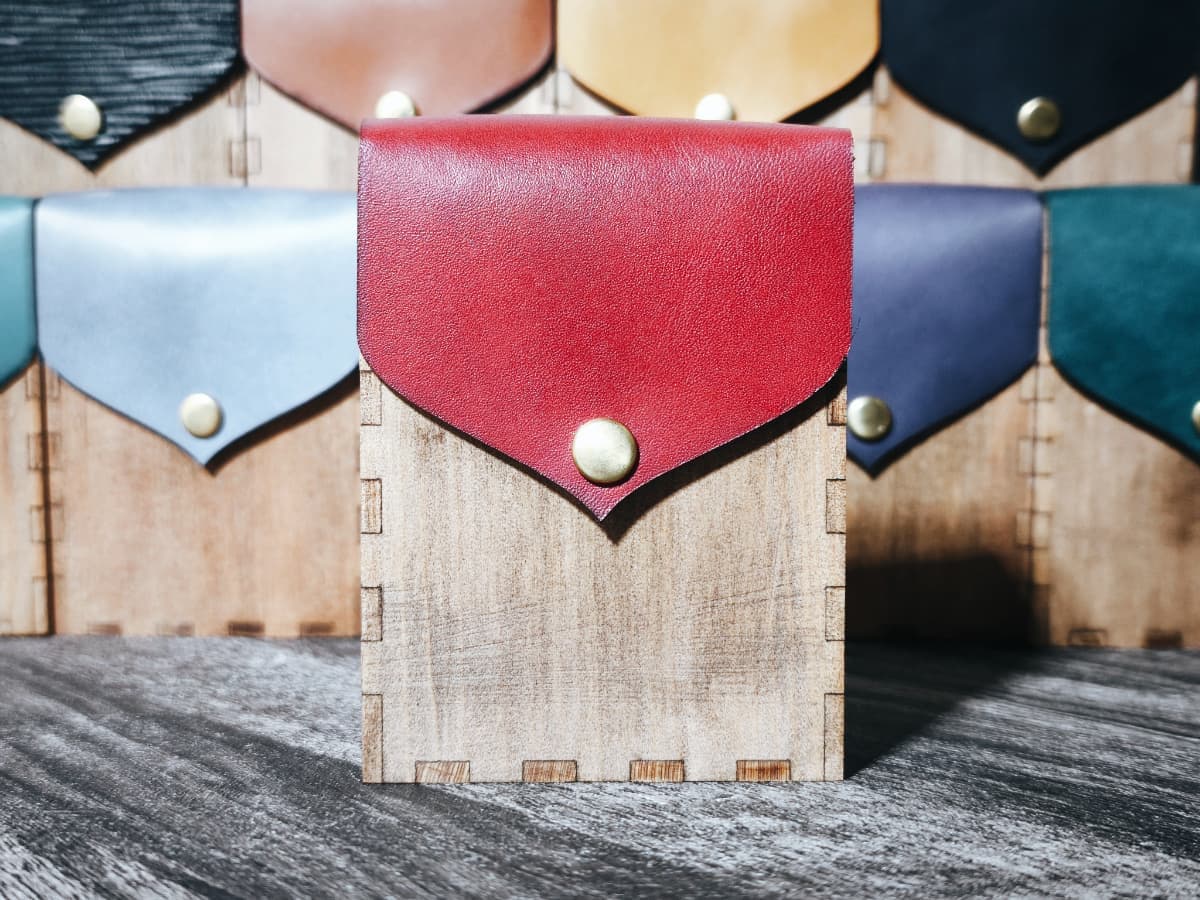 ボディーには天然木材、フラップには姫路産の本革を用いました。