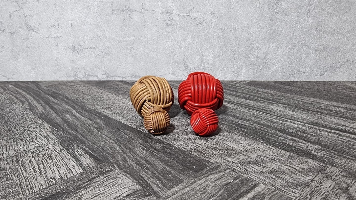 レザーコードボールは当店にて本革を手作業で編んで製作いたしました。