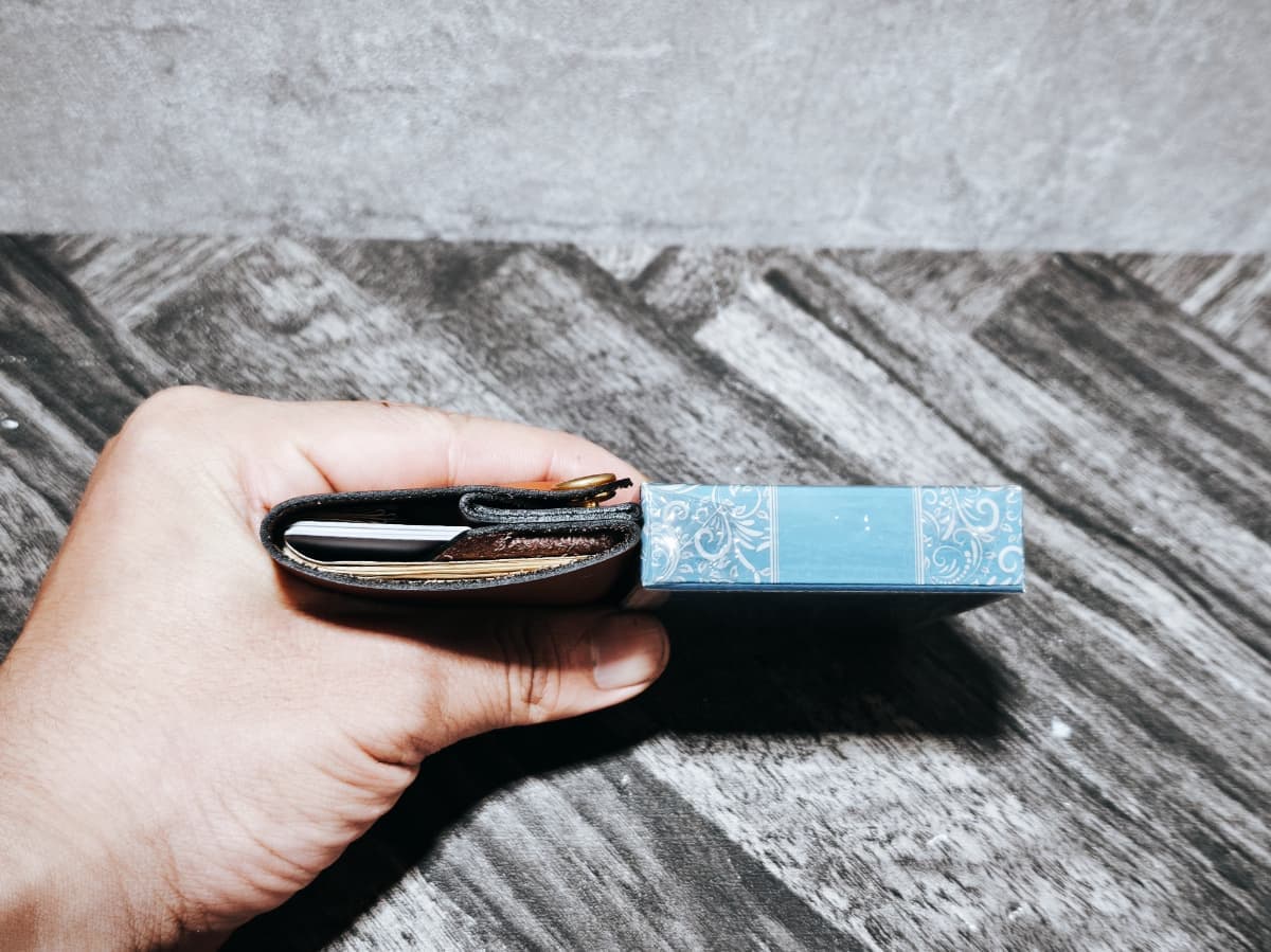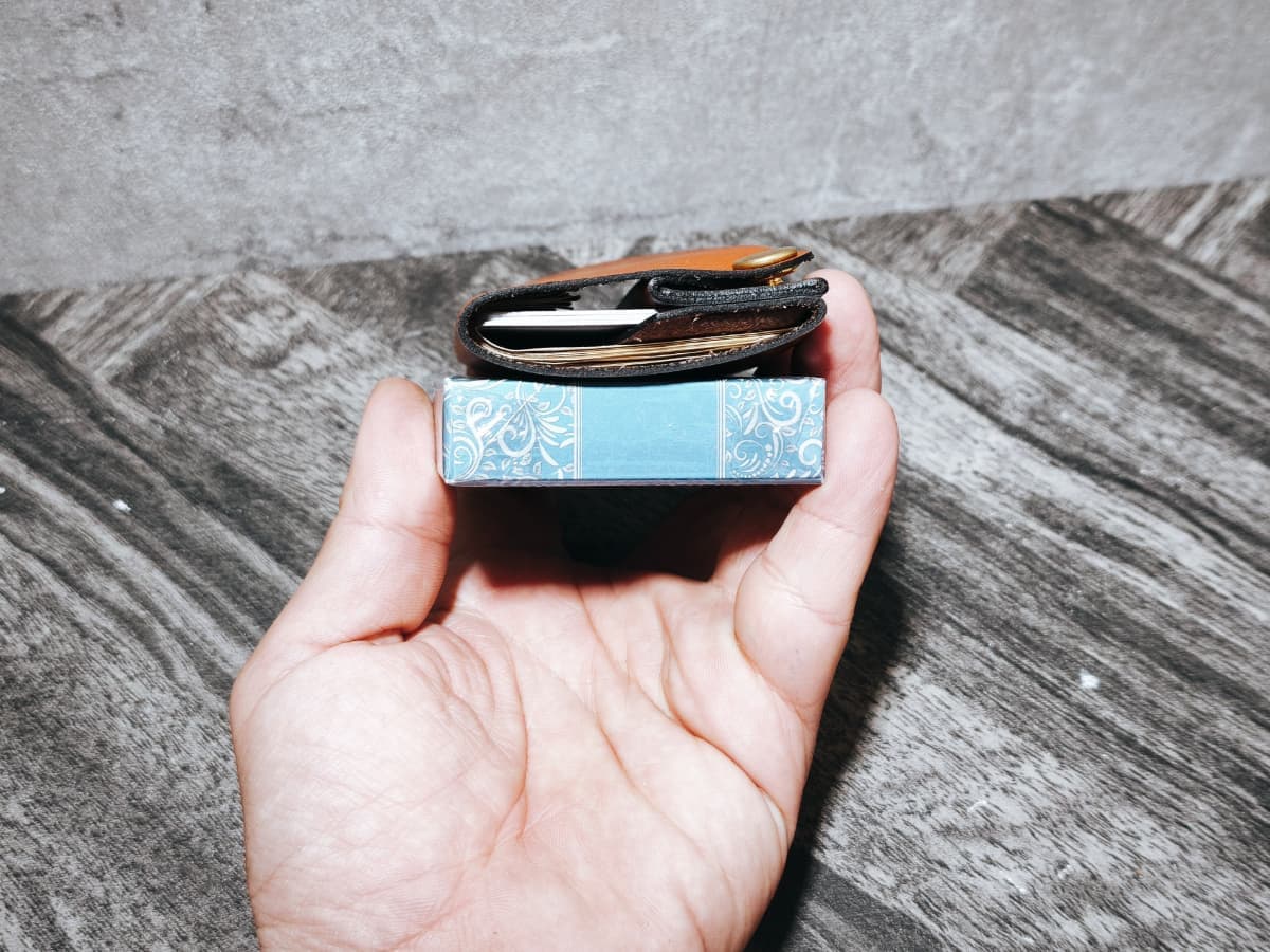 実際にはここまで多くの小銭とお札を持ち運ぶことは少ないと思いますので、よりスリムに持ち運びが可能です。