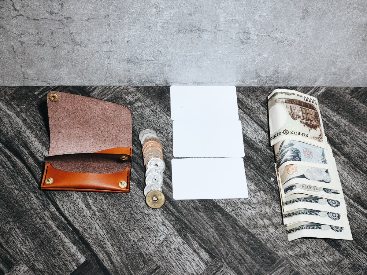 キャッシュレス決済が主流の現在、最低限のカードと小銭、お札を可能な限りコンパクトにまとめるため、徹底的に不要な箇所を取り除いて設計しております。