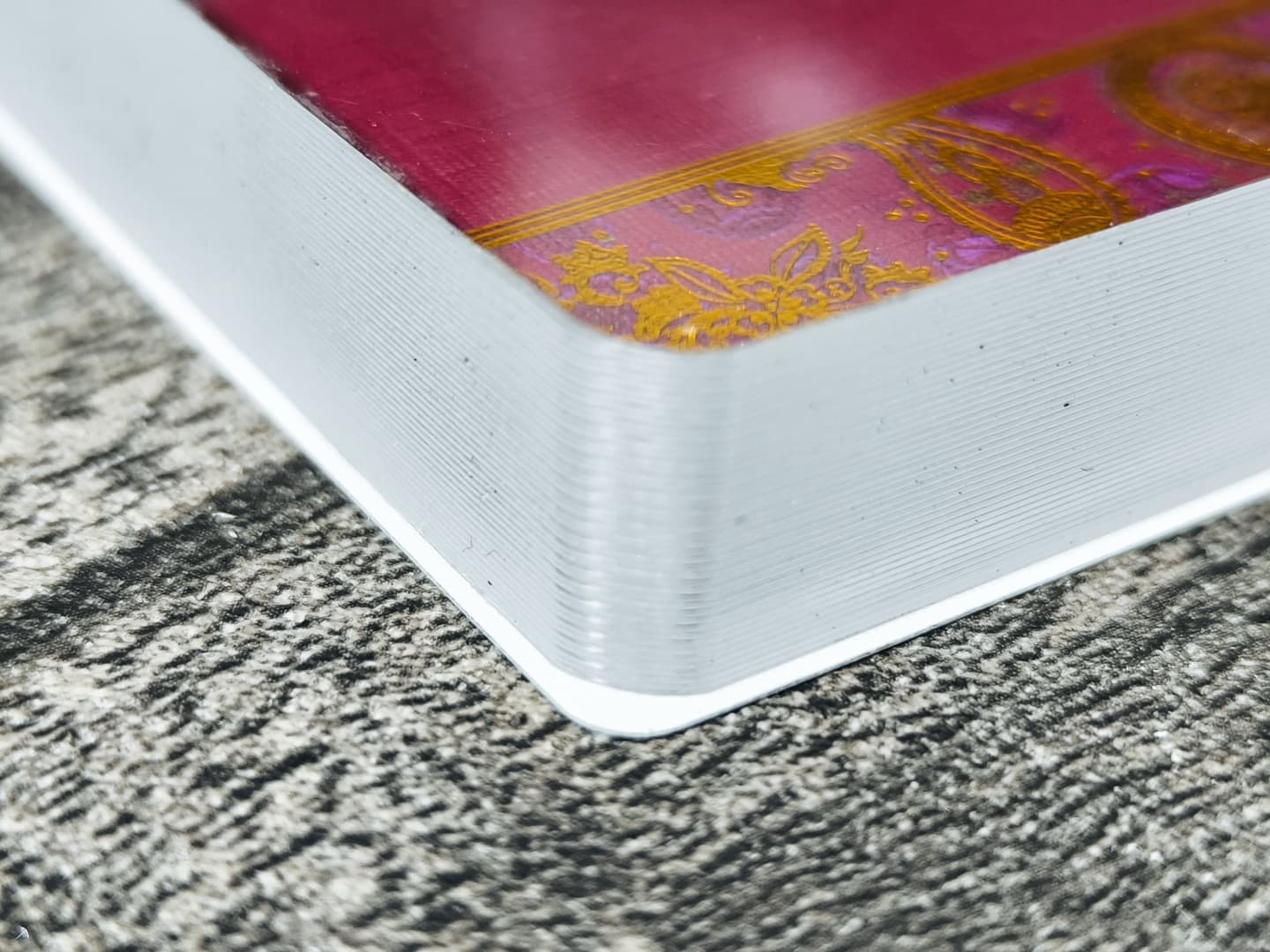 通常カードのコーナーは半径3㎜なのですが、本商品は4㎜にて製作しております。