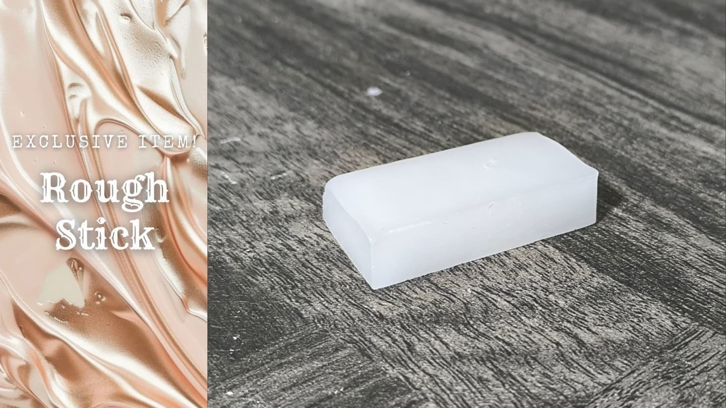蝋の粘着力を用いているのでスプレータイプのラフ加工とは使い勝手が異なりますが、気軽に加工できて調整も容易なのでスティックタイプのラフ加工が優れている点も多数ございます。