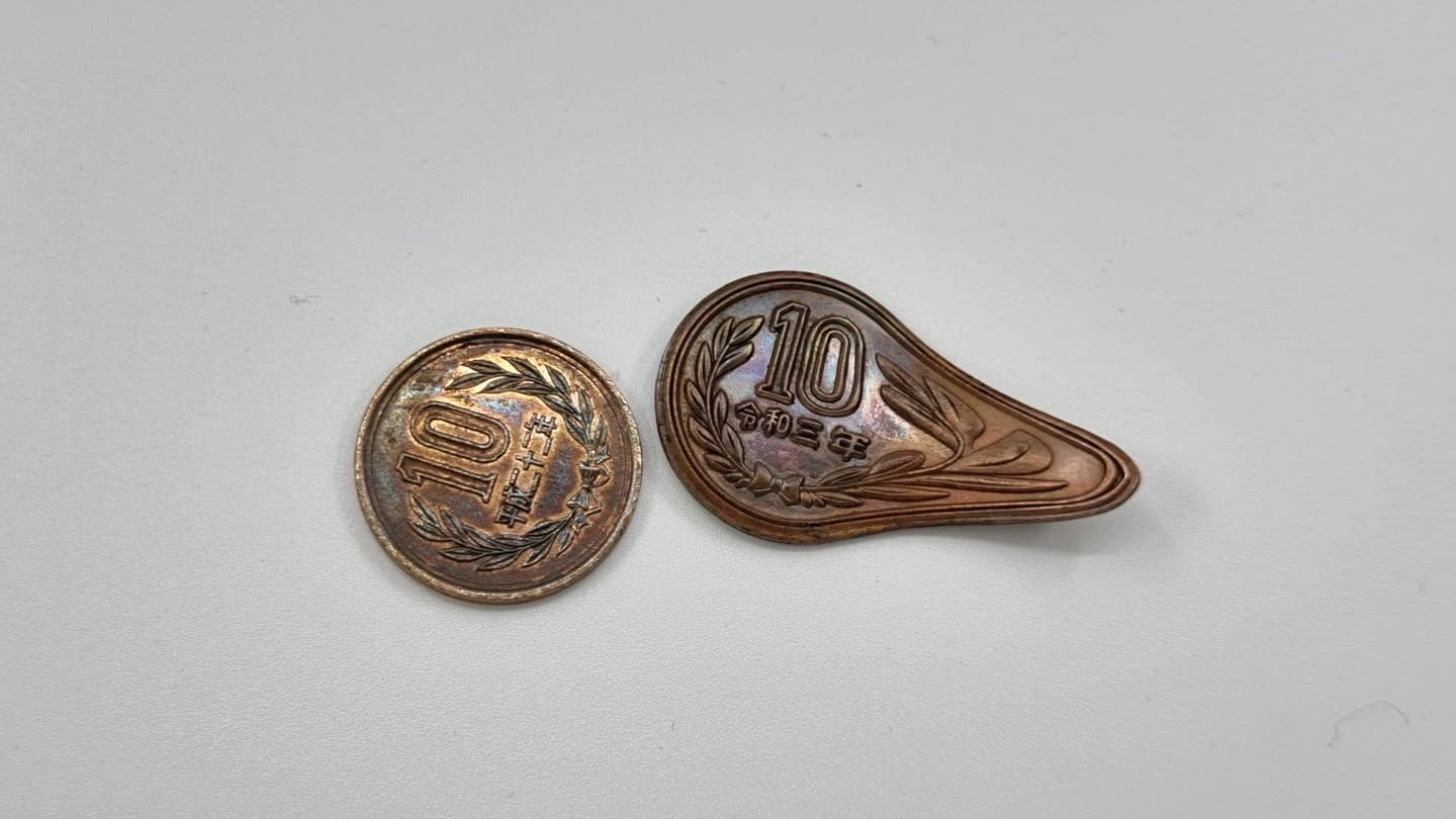 10円玉が伸びたデザインのコインを新たに製作いたしました。