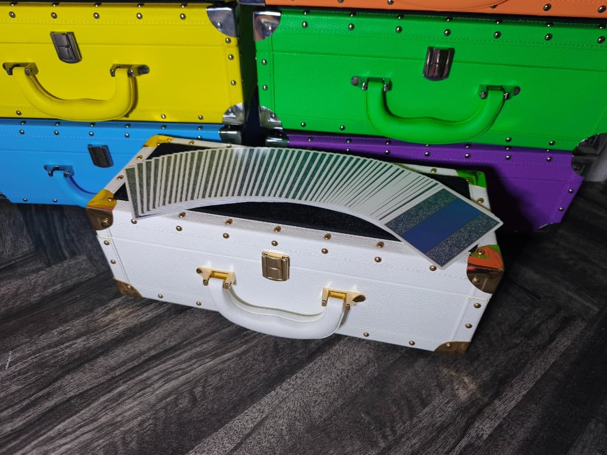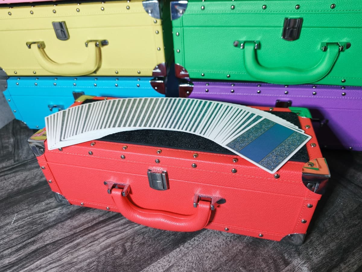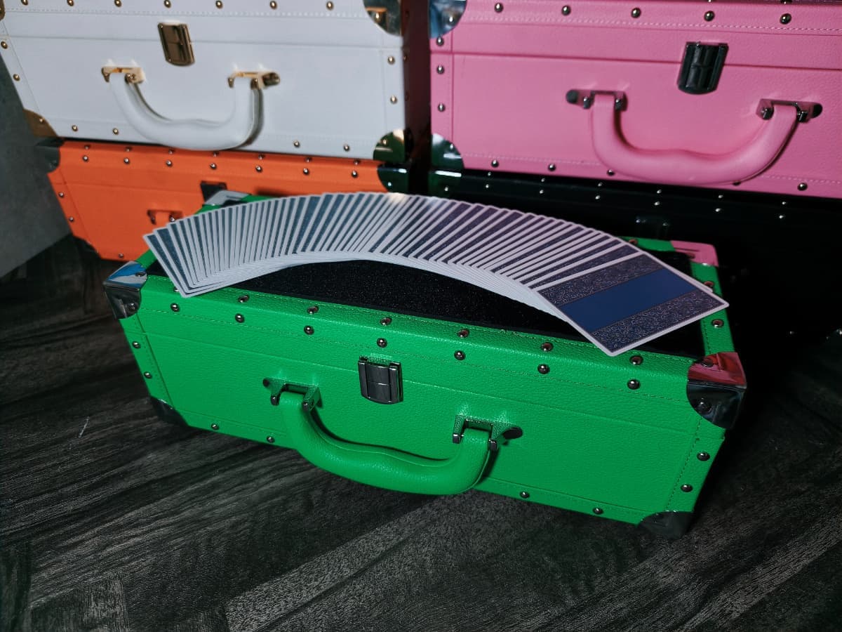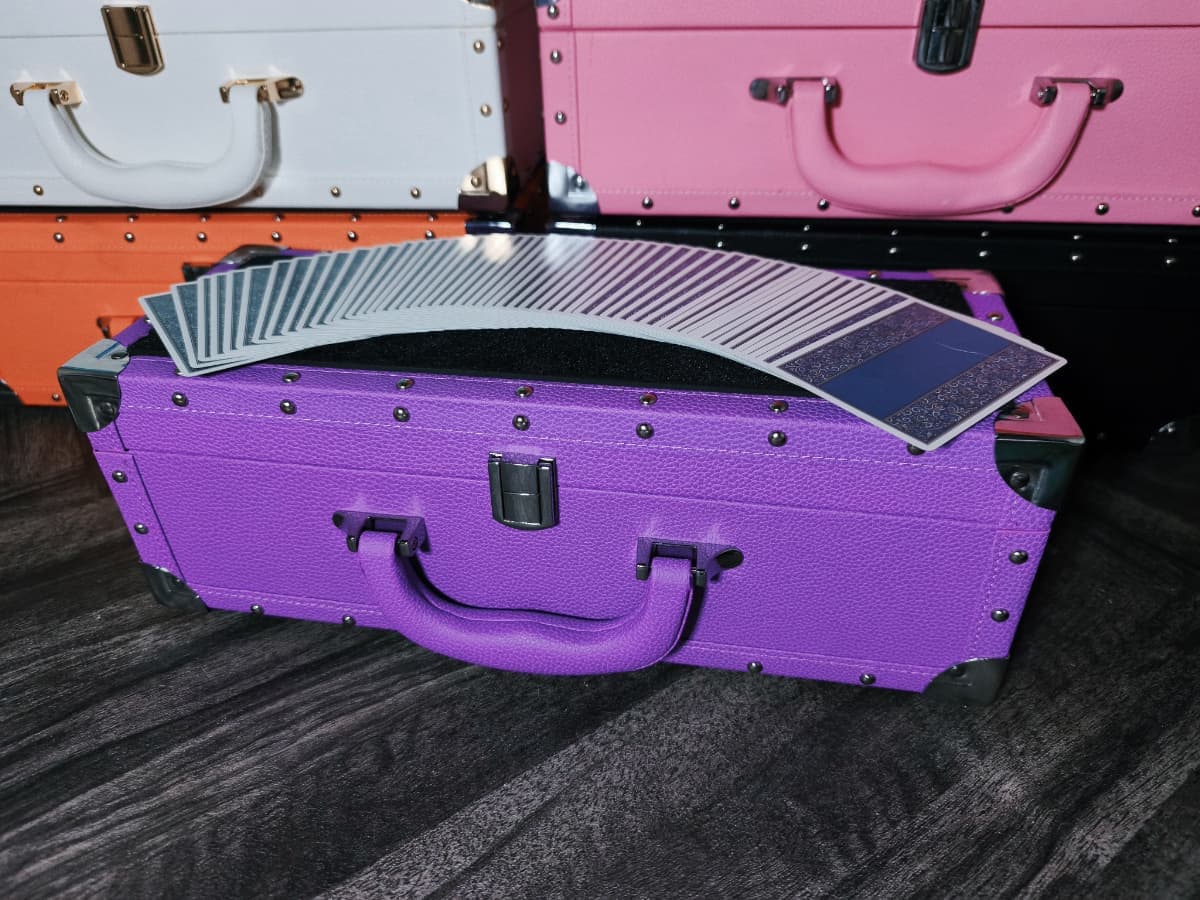 通常のケースと異なり、シャンパンのように横長のデザインとなっているためテーブルホッピングの際に省スペースで演技の準備を整えることが可能です。