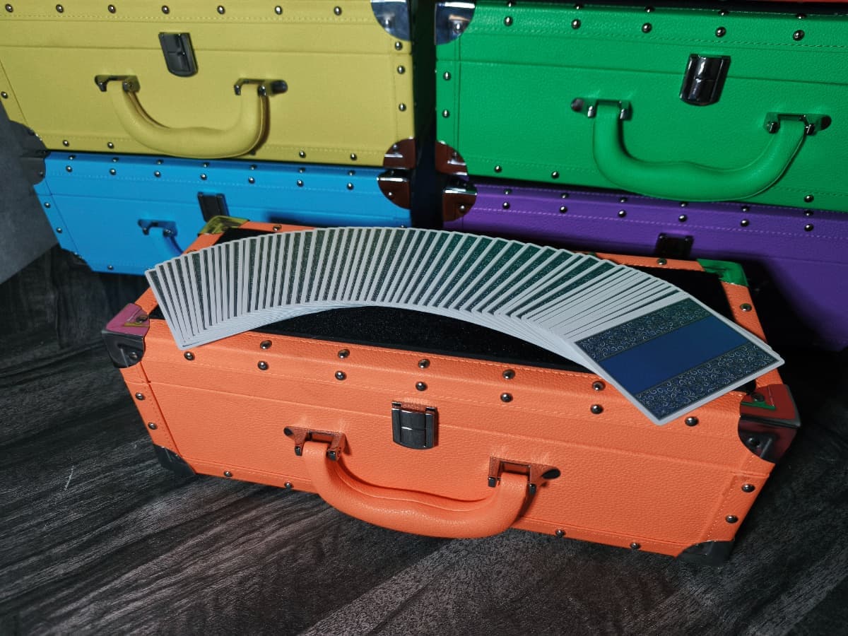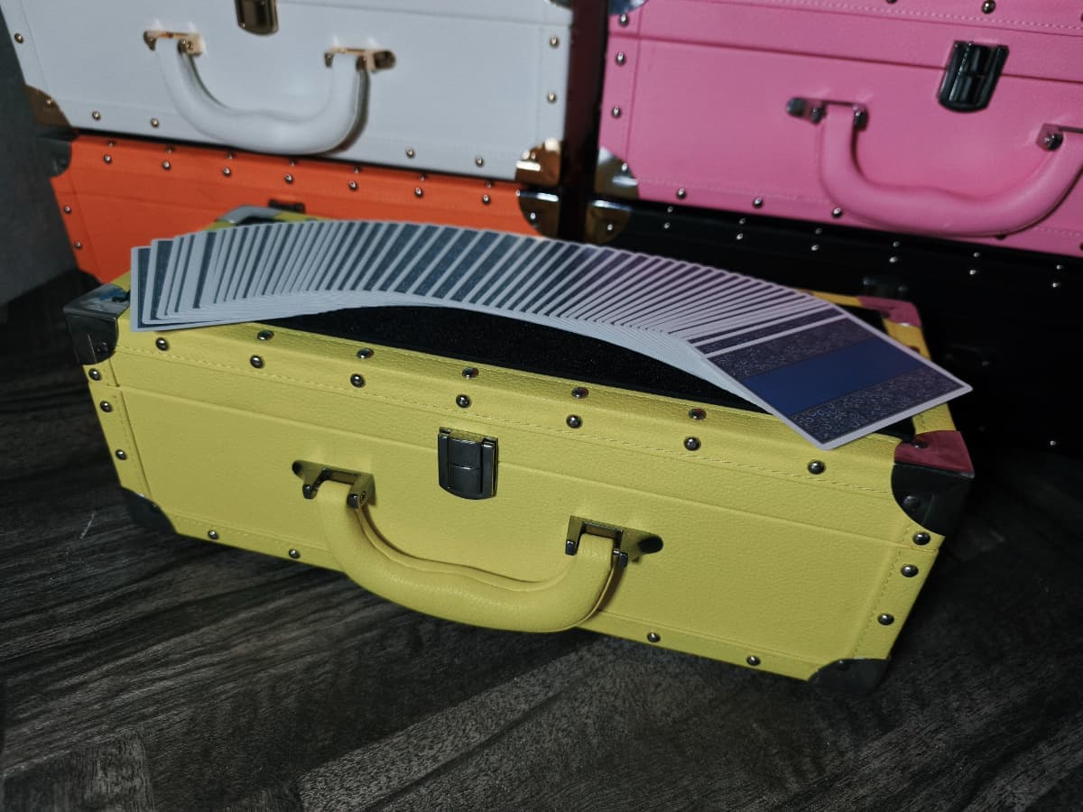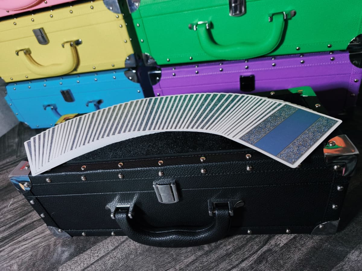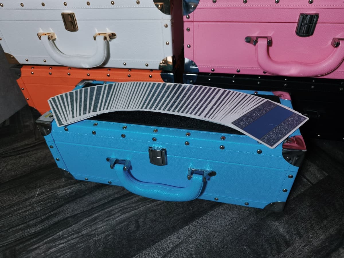 通常のケースと異なり、シャンパンのように横長のデザインとなっているためテーブルホッピングの際に省スペースで演技の準備を整えることが可能です。