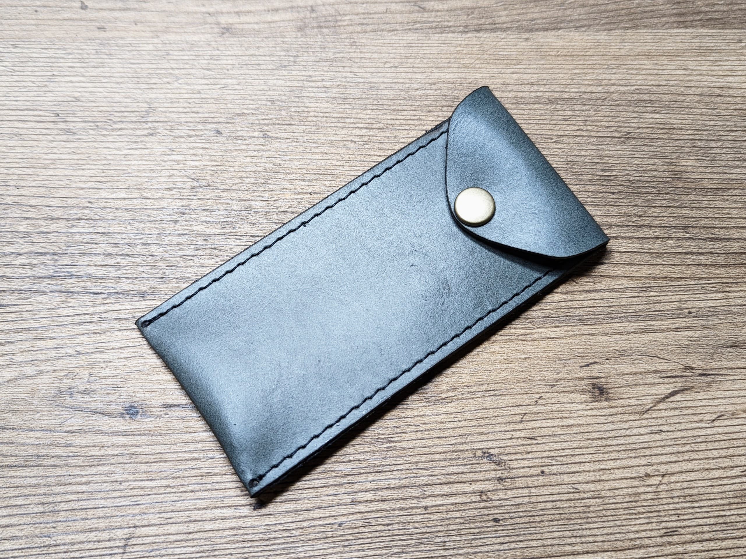 ミニケースはレギュラーケースと同じ革から切り出し、ボタンも同素材でサイズの小さいものを採用しております。
