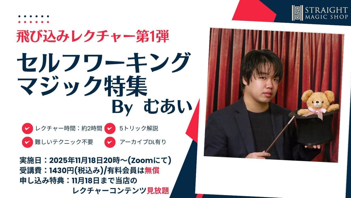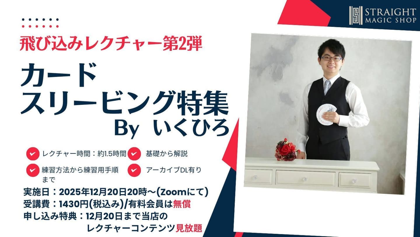 当店のレクチャーの特長は、「マジシャンの考え方」を重要視して、「アクセスしにくいニッチな情報」にこそ価値を置き、「マジック(トリック)以外の重要な情報」も積極的に導入していく点です。